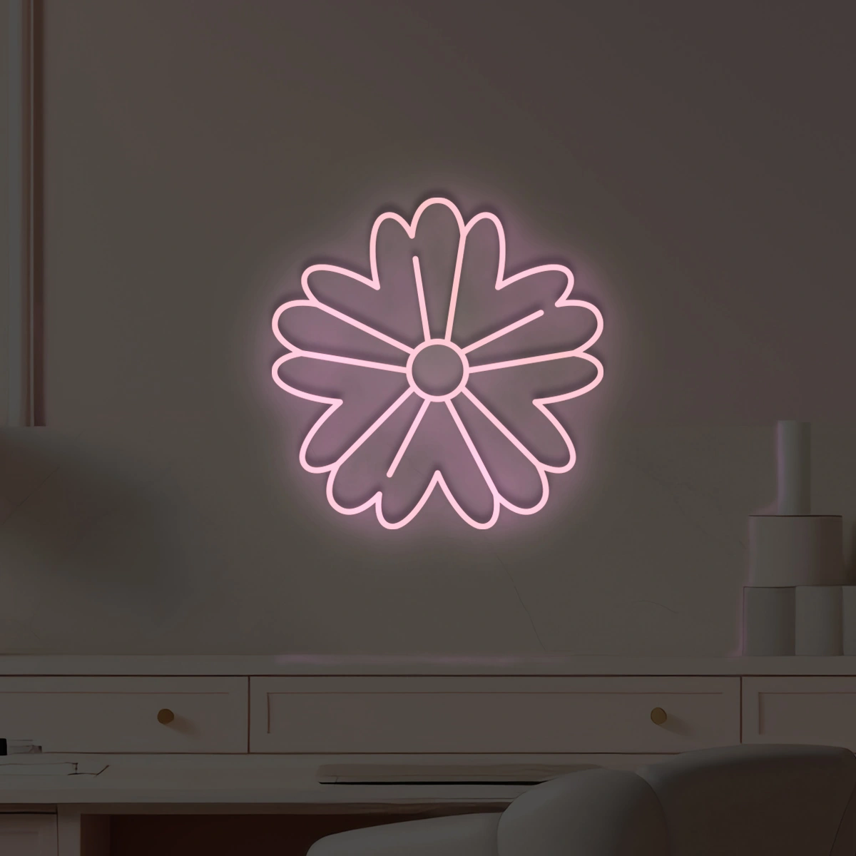 Neon „Kwiat” dodaje wnętrzu ciepła i naturalnego uroku, jak promień porannego słońca muskający ściany. Ten dekor to harmonia i spokojny rytm życia. Wieczorem wypełnia przestrzeń przytulnością, a o poranku — świeżością nowego dnia. Taki Kwiat neon świetnie sprawdzi się w sypialni, studiu jogi, kawiarni lub w każdej twórczej przestrzeni.